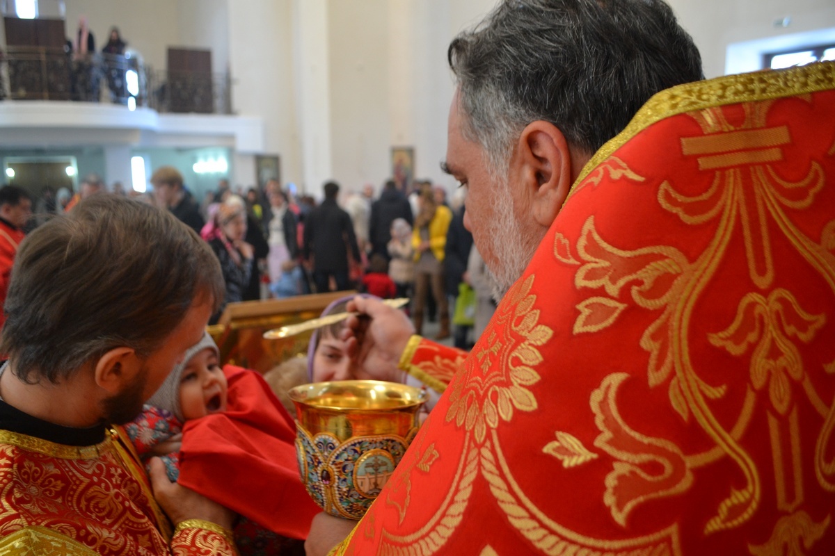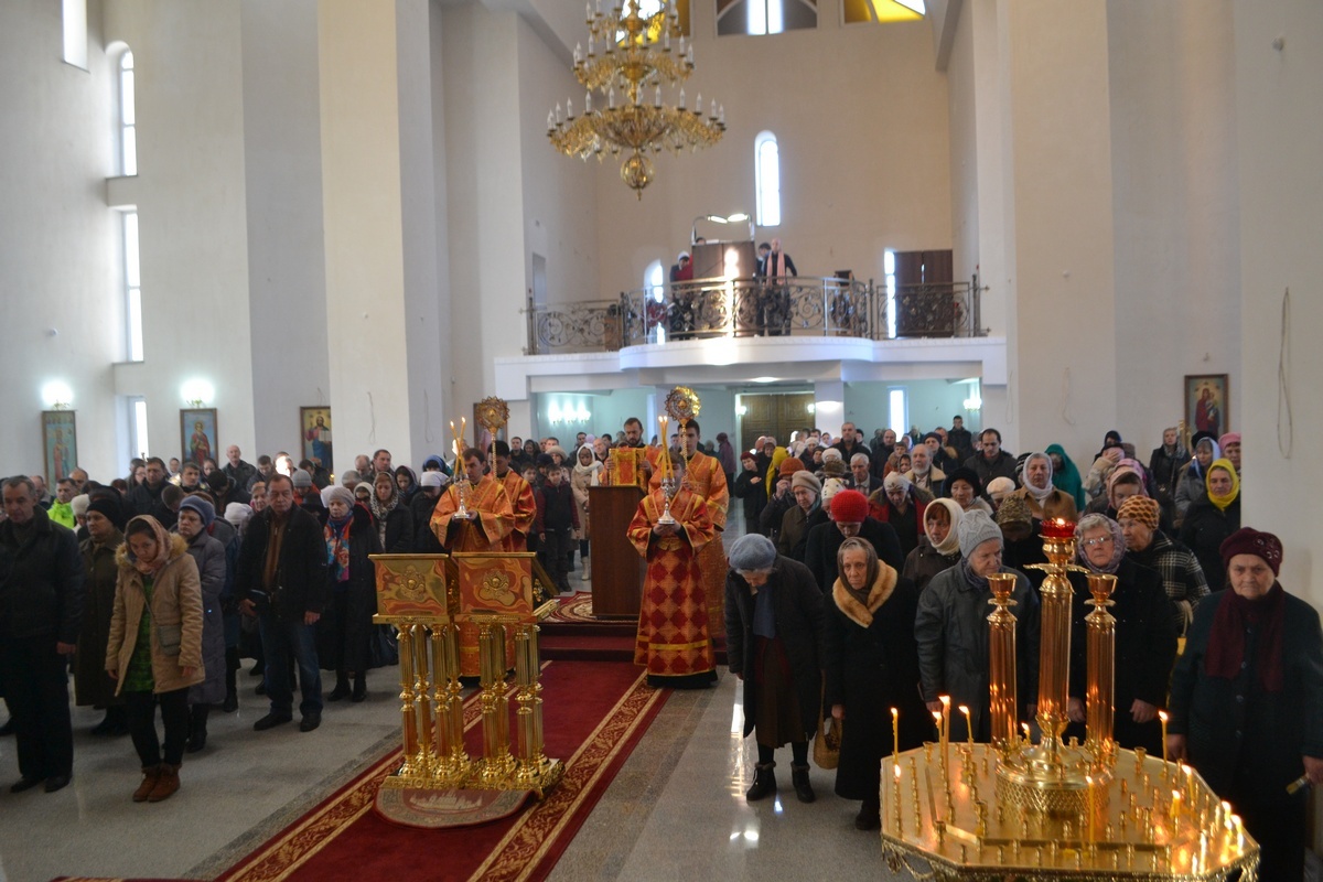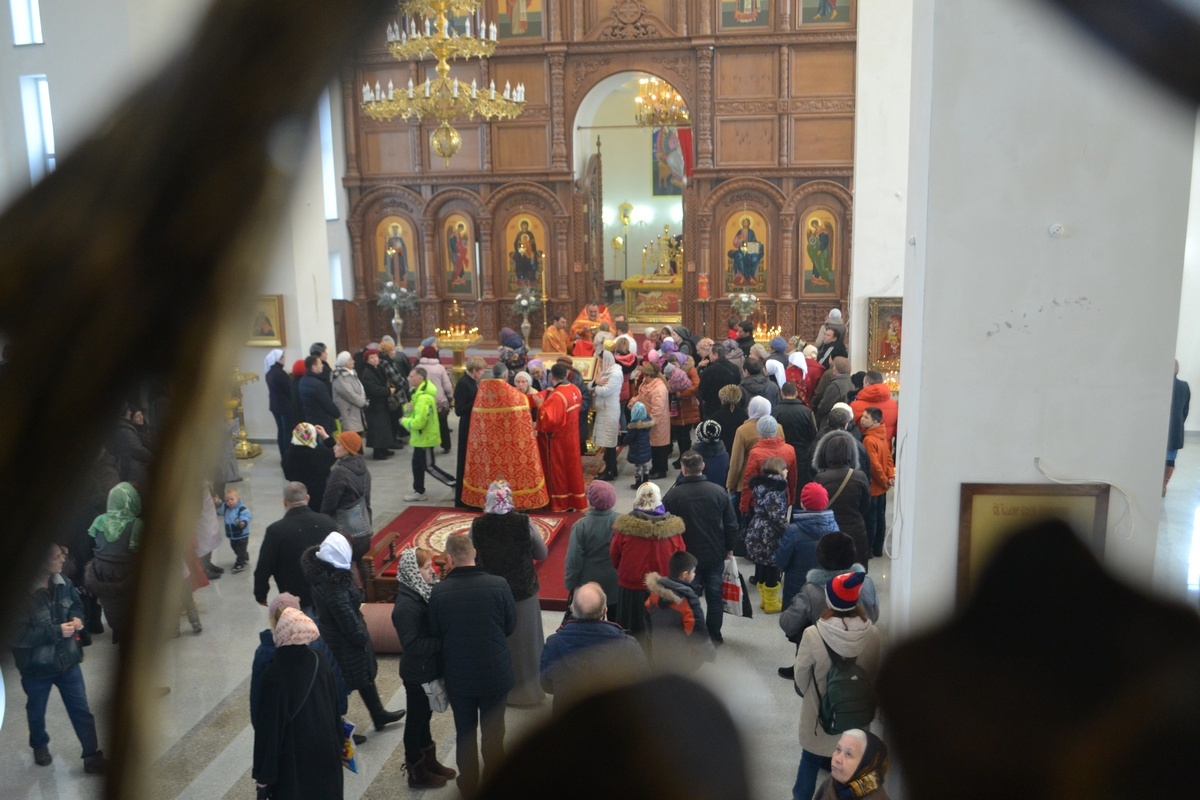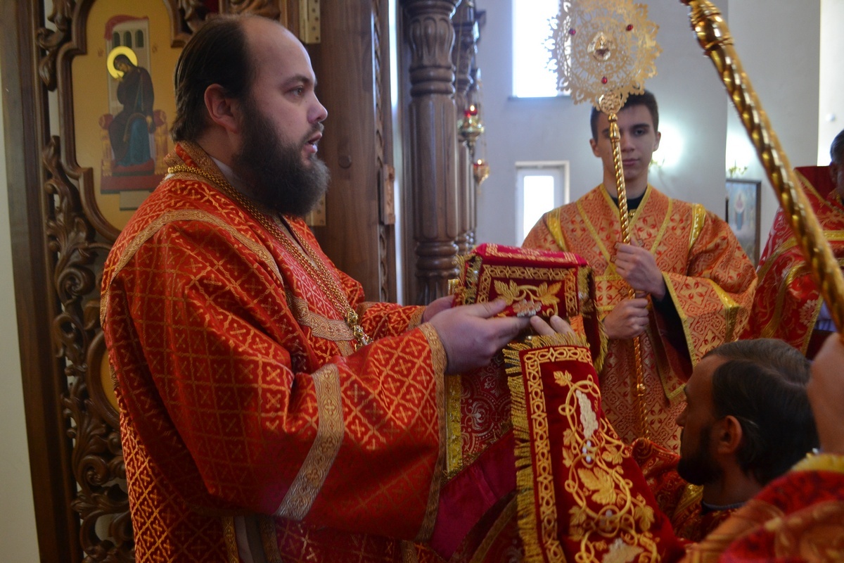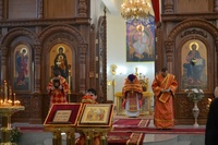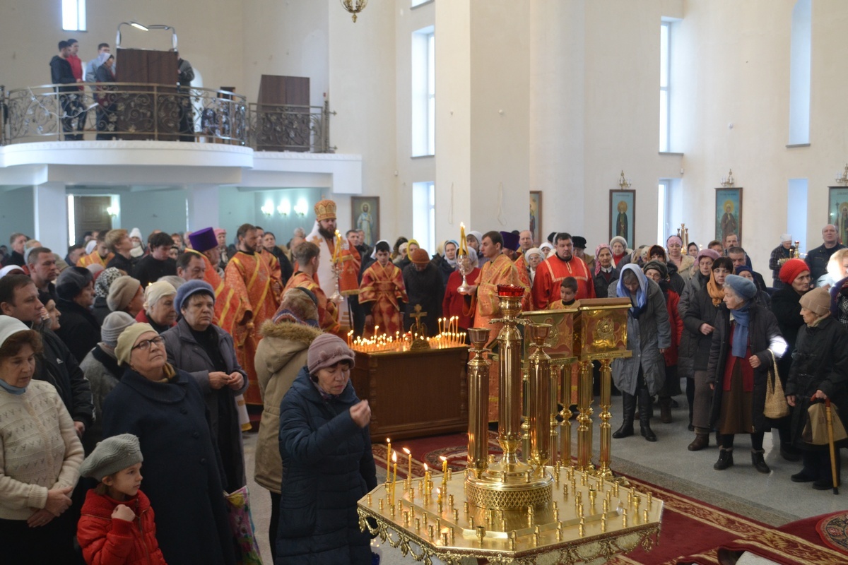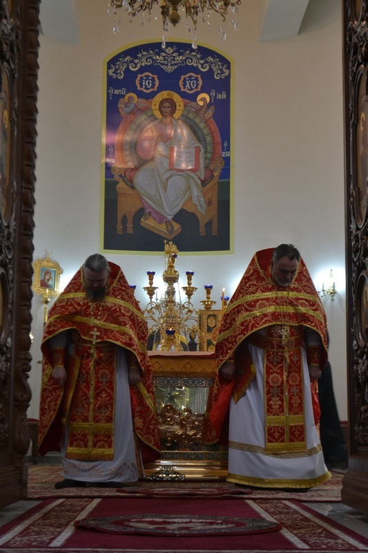Его Преосвященству сослужили: настоятель Владимирского храма протоиерей Алексий Зайцев, клирик Свято-Воскресенского собора иерей Георгий Дворовой.