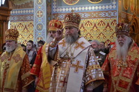 Было провозглашено многолетие Предстоятелю Русской Православной Церкви Святейшему Патриарху Московскому и всея Руси Кириллу; Главе Казахстанского Митрополичьего округа, архипастырям, прибывшим на празднование; Президенту, властям, воинству и всему народу Казахстана.