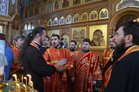 По окончании богослужения Глава Казахстанского Митрополичьего округа сердечно поблагодарил Преосвященных архипастырей, духовенство, монашествующих и всех участников торжеств за общую молитву, поздравил собравшихся с днем памяти мученицы Агафии Панормской.