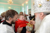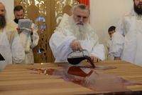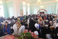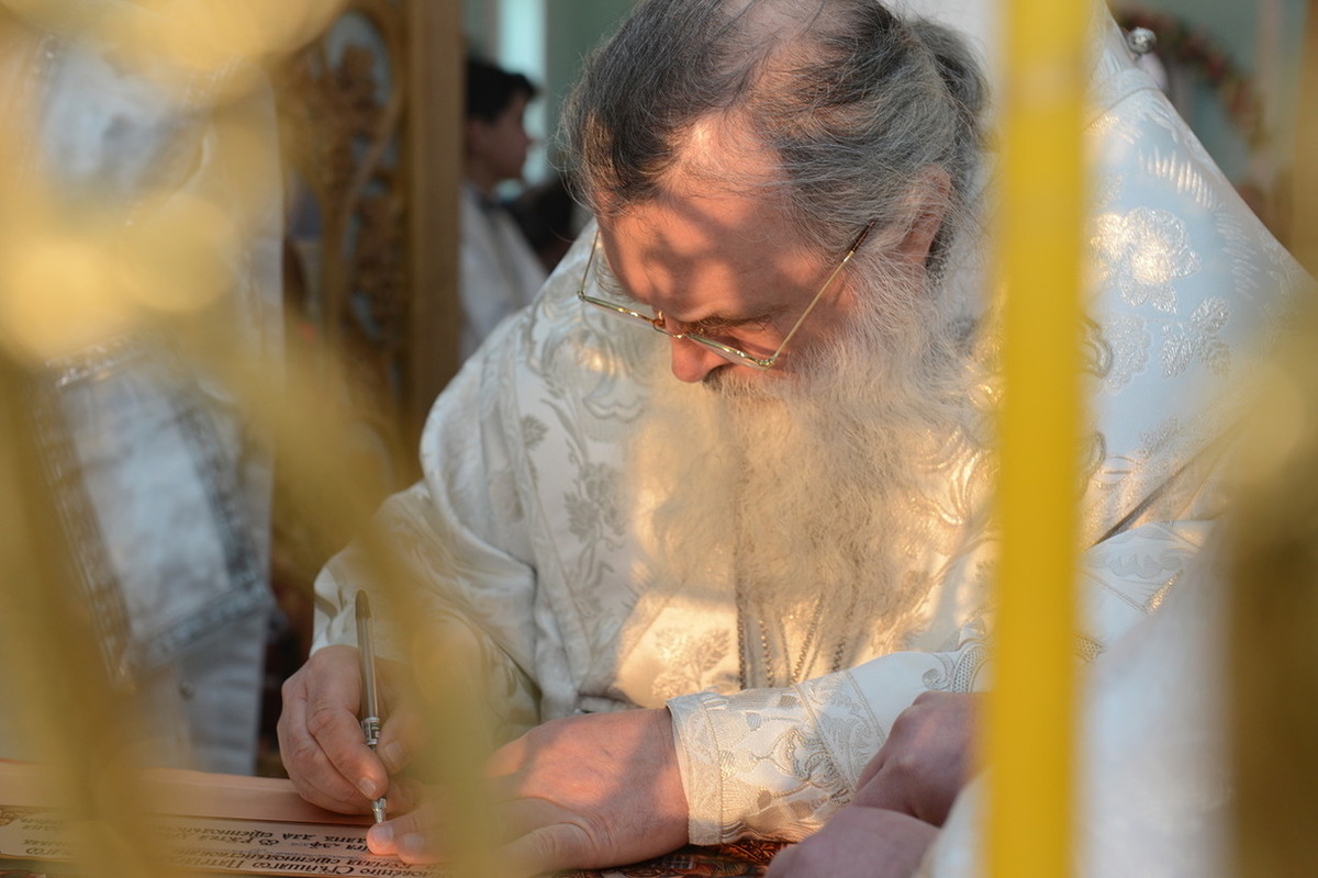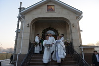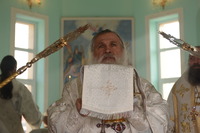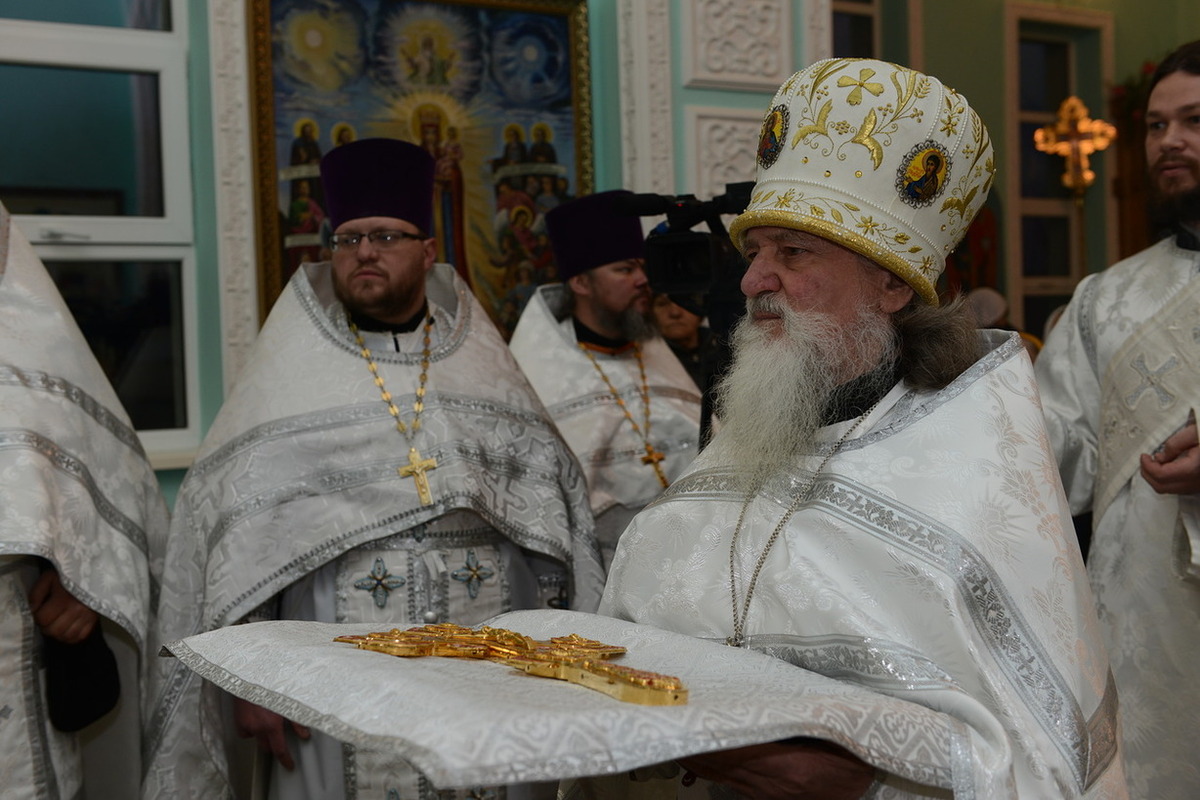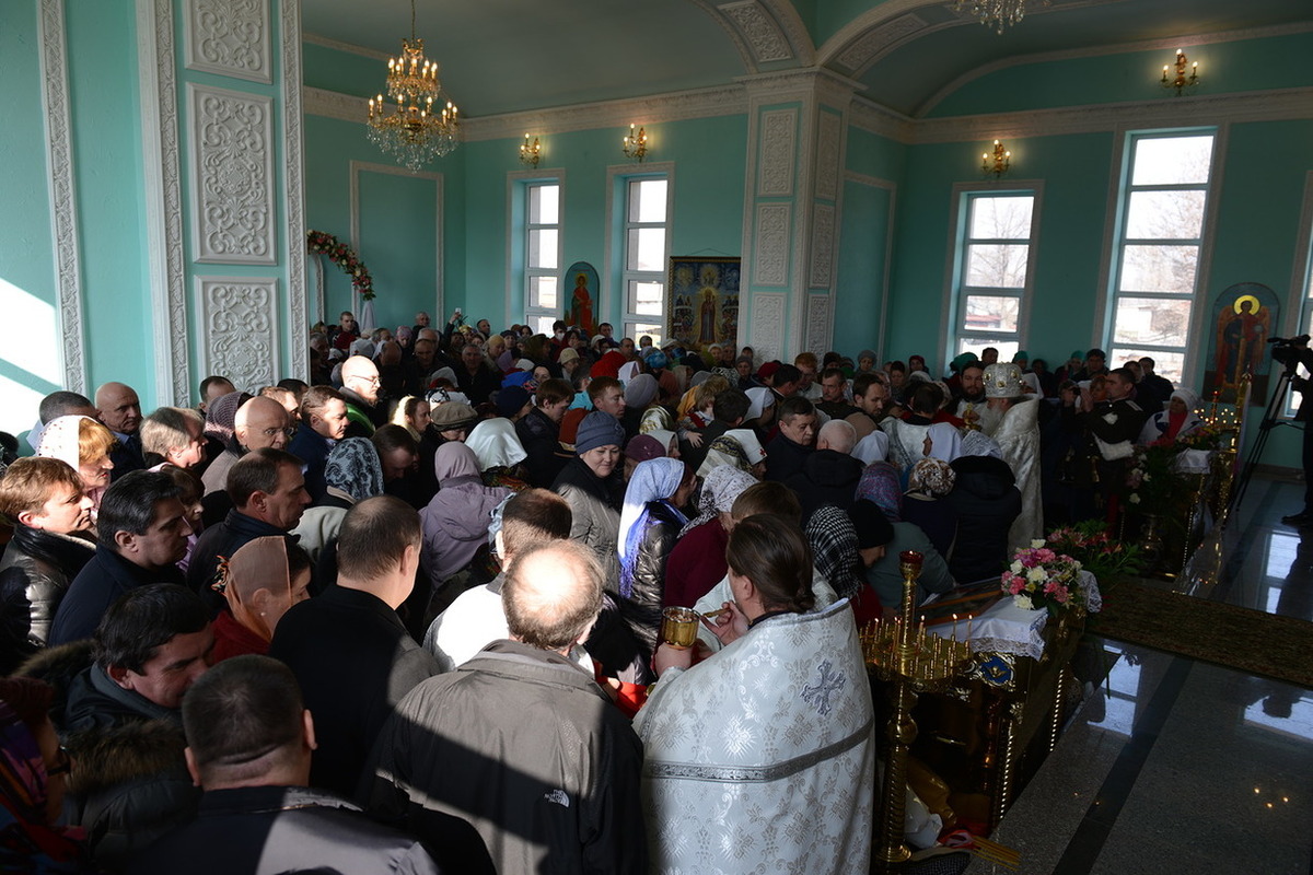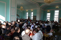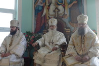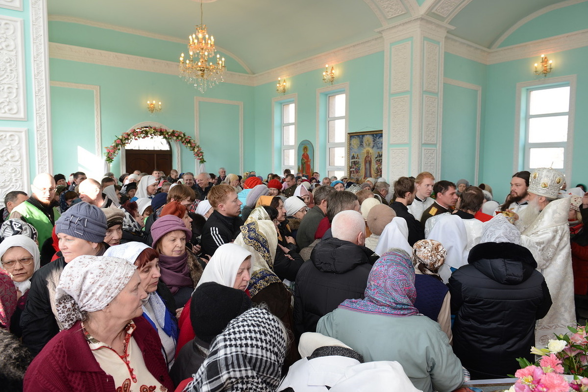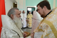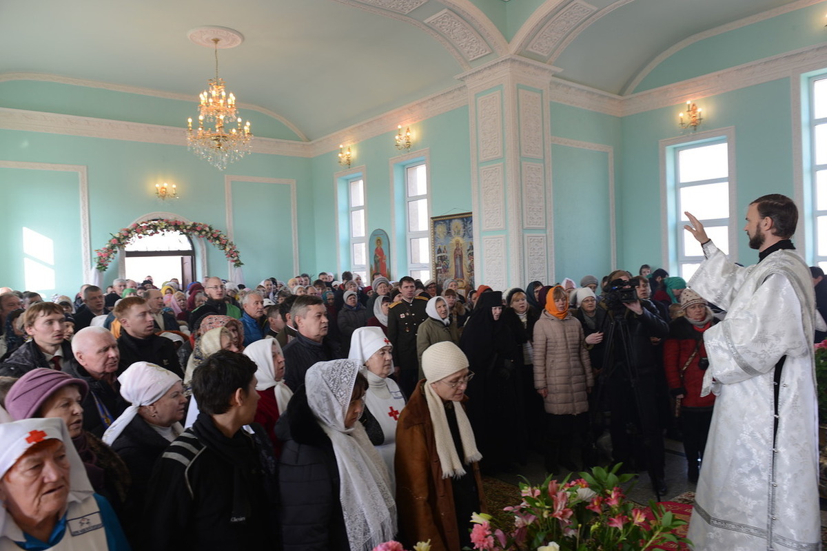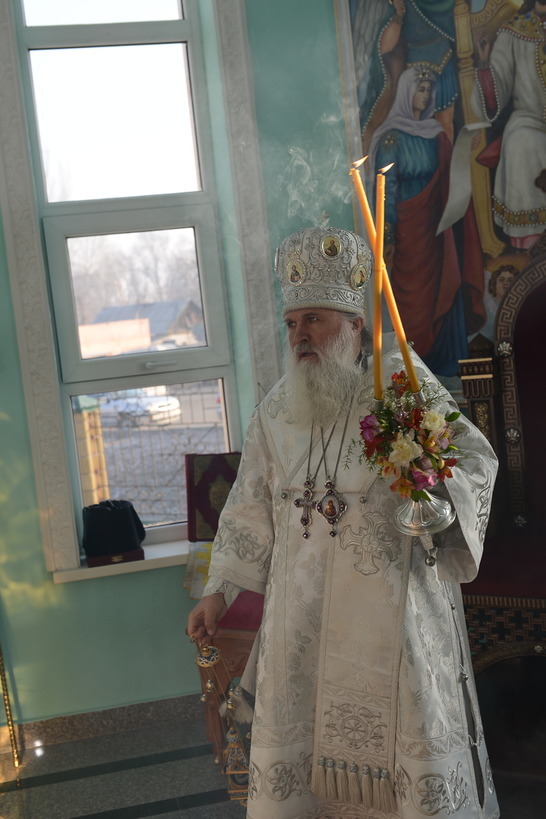По окончании богослужения Митрополит Викентий обратился к пастве с архипастырским словом: «Сегодня свершилась великая радость, пришло большое утешение – мы освятили храм. И произошло это великое событие в те дни, когда святая Церковь празднует Сретение Господне, когда Богородица принесла Младенца Христа в храм Божией, чтобы посвятить Его Богу по принятому установлению. Все мы посвященные Богу в Таинстве Крещения имеем возможность посещать Храм Божий. Для того он и строится, чтобы мы могли приходить туда для встречи с Создателем, беседовать с Ним и получить от Него все необходимое для нашей жизни и земной и вечной. В молитвах, которыми мы молились сегодня, совершая чин освящения, сказано, что храм после освящения становится храмом Живущего в нем Бога, становится славой Небесного нашего Отца, жилищем благодати Божией, которая всех нас встречает, укрепляет, очищает, радует, дает мир и согласие. Очень отрадно, что храм этот посвящен святому праведному Иоанну Кронштадтскому, великому пастырю нашей церкви, которого мы с любовью называем любимым батюшкой. В свое время батюшка Иоанн говорил о том, что построить храм Божий является великой честью для человека. Поэтому, большая честь всем вам дорогие братья и сестры, которые вместе строили этот храм. Каждый из вас жертвовал на строительство церкви, каждый из вас является участником великого делания. А это значит, что Господь не оставит вас своей милостью. Строящему храмы, множество грехов прощает Господь.
