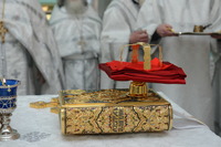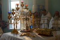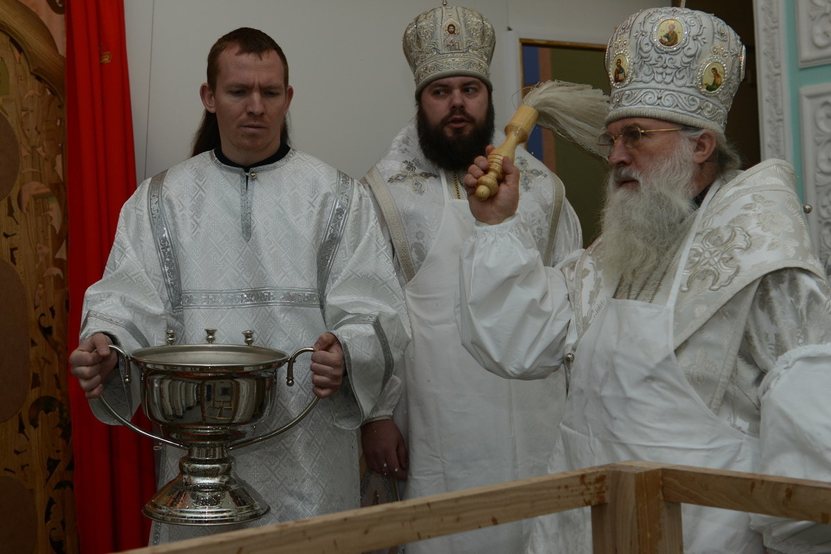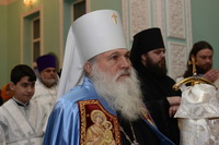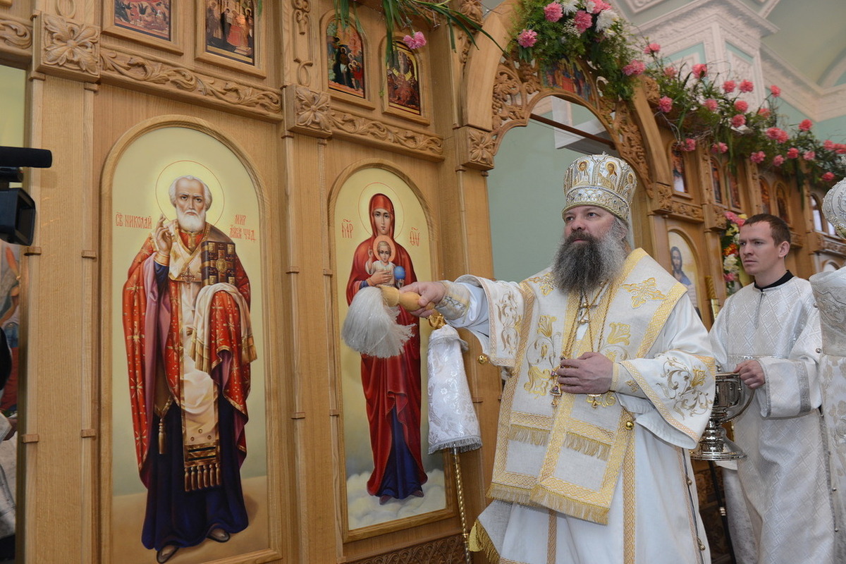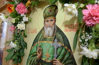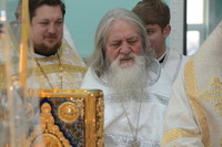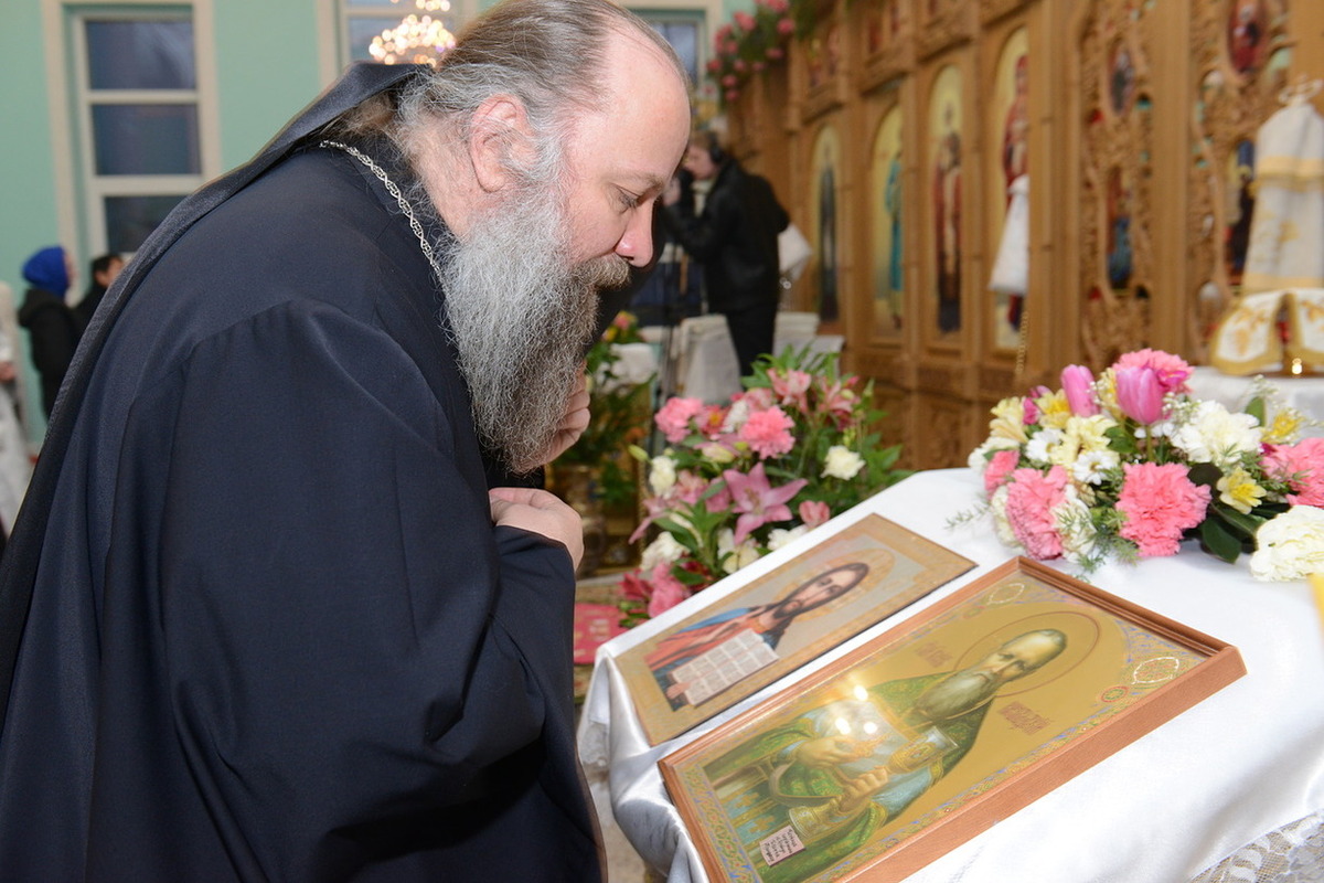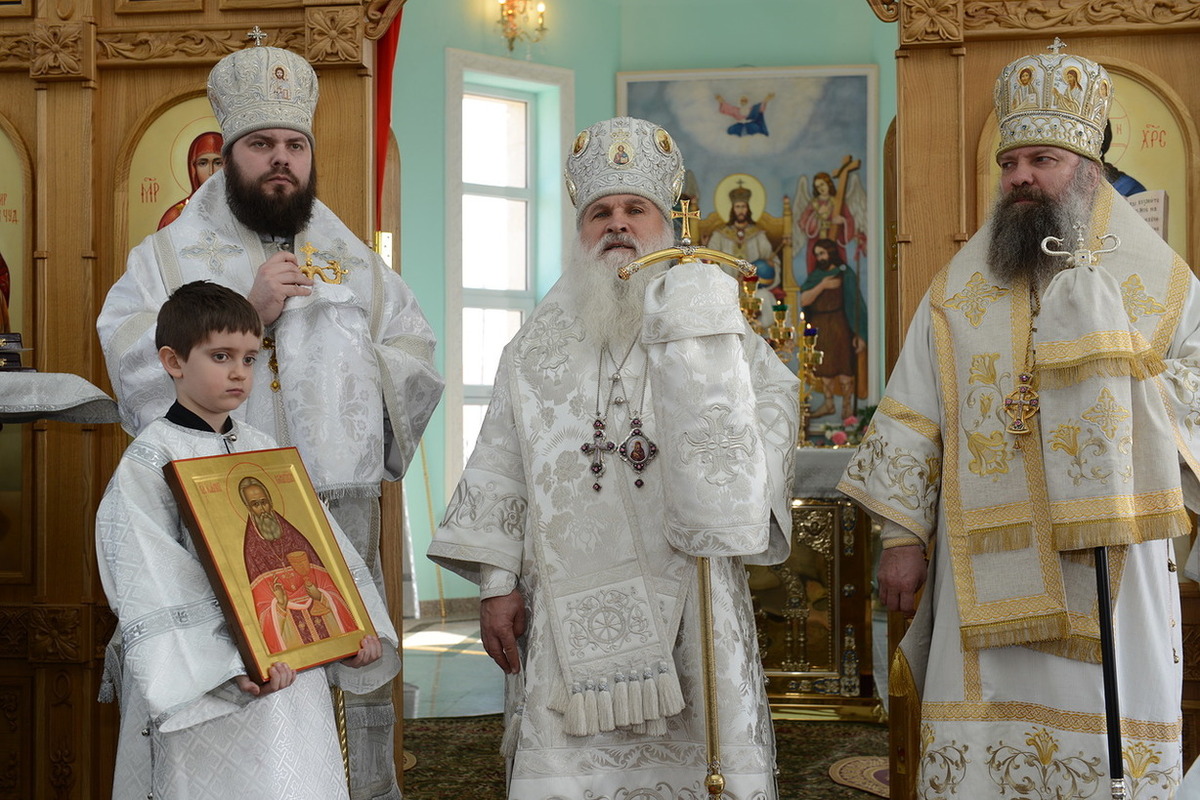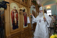 По окончании слова, Высокопреосвященнейший Владыка передал в дар приходу новоосвященного храма икону святого праведного Иоанна Кронштадтского.