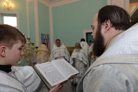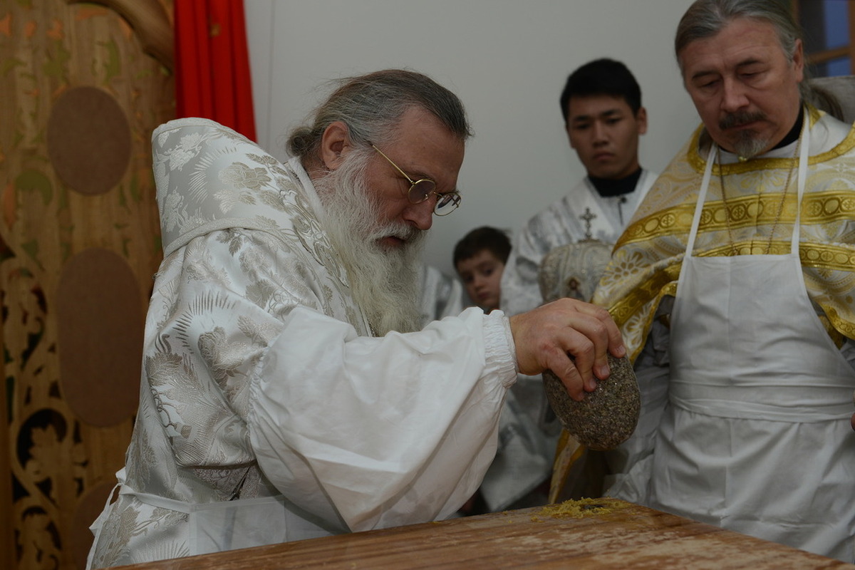 Его Высокопреосвященству сослужили: епископ Душанбинский и Таджикистанский Питиритм, епископ Бишкекский и Кыргызстанский Даниил, настоятели и духовенство храмов Бишкекской и Кыргызстанской епархии: секретарь епархии протоиерей Игорь Дронов, благочинный Иссык-Кульского округа протоиерей Сергий Чувичкин, благочинный Беловодского округа протоиерей Алексий Махров, настоятель Владимирского собора протоиерей Алексий Зайцев, благочинный Бишкекского округа иерей Андрей Кунавин, благочинный Чуй-Токмокского округа иерей Александр Атаманов, настоятель храма во имя святого праведного Иоанна Кронштадтского протоиерей Андрей Борисенко, настоятель храма Архистратига Михаила иерей Александр Пелин, клирик Свято-Воскресенского собора иерей Георгий Дворовой.