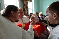 Проповедь перед причастием произнес священник Александр Пелин, настоятель храма Архистратига Михаила в с. Беловодск.