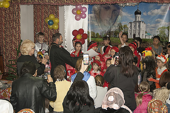 По окончании концерта гостеприимные прихожане храма Димитрия Солунского накрыли столы с угощениями, а ребята воскресной школы организовали для посетителей игры и конкурсы без возрастных ограничений.