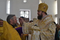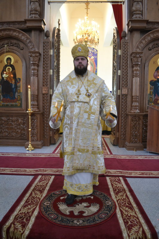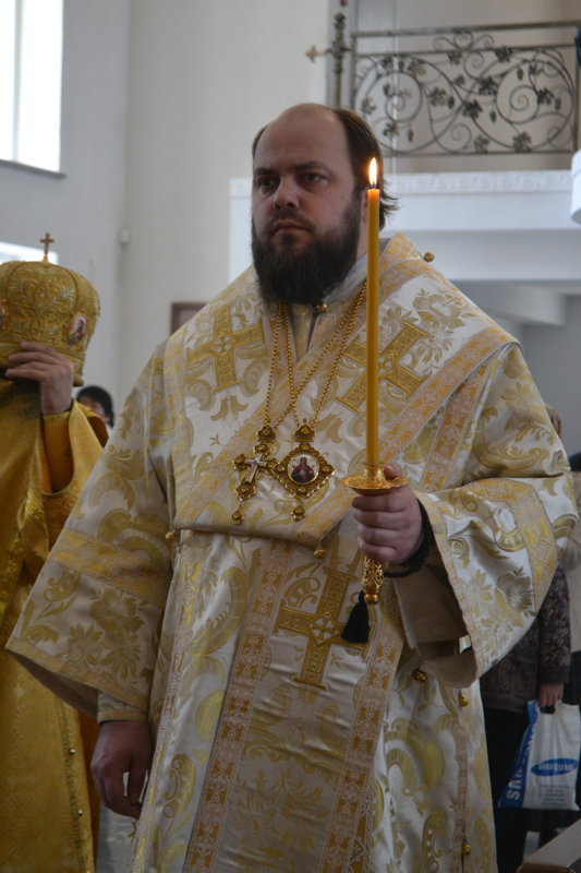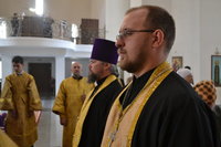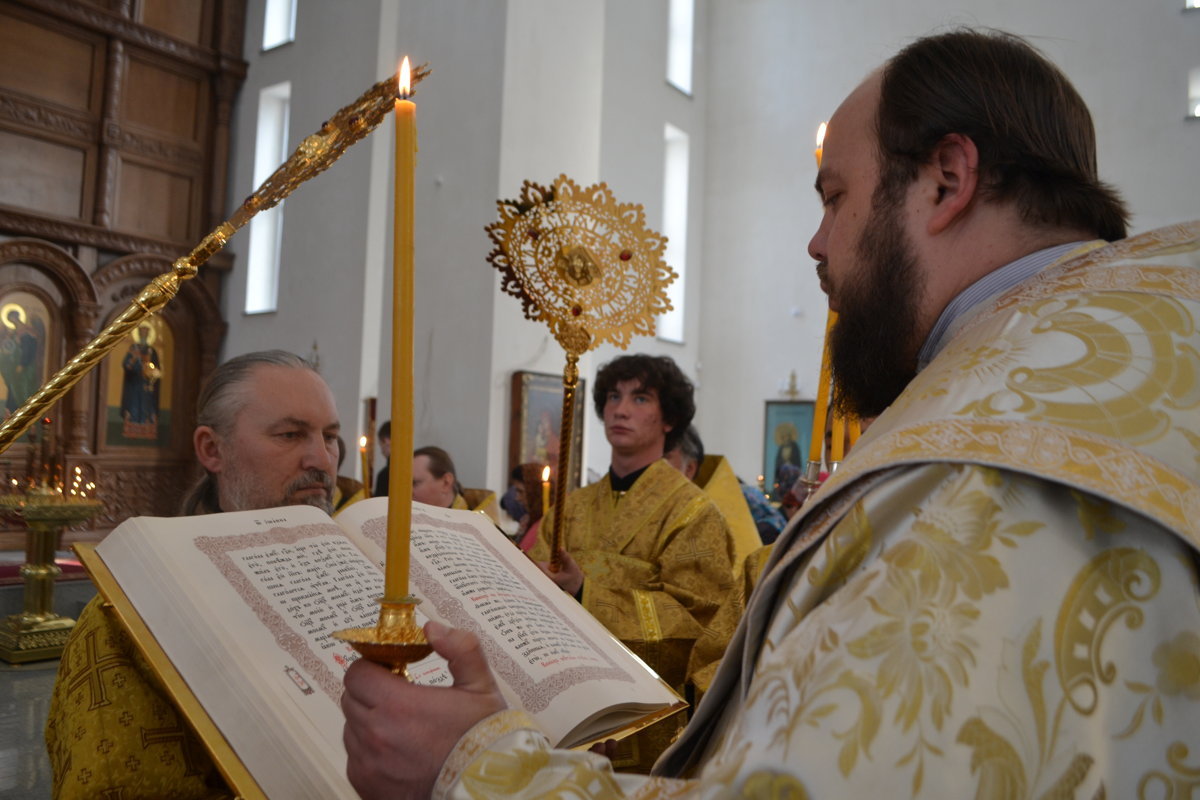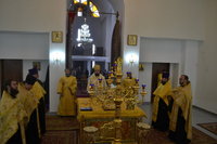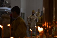 Его Преосвященству сослужили: настоятель Владимирского собора протоиерей Алексий Зайцев, клирики Владимирского собора иерей Алексий Сыромятников, иерей Никита Чебуков, клирик Свято-Воскресенского собора иерей Георгий Дворовой.