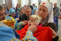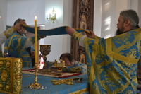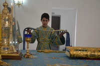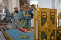 Владыке сослужили: настоятель Владимирского храма протоиерей Алексий Зайцев, клирик столичного Воскресенского собора иерей Георгий Дворовой и клирик Владимирского храма иерей Никита Чебуков.