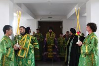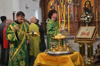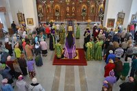 Его Преосвященству сослужили: протоиерей Алексий Зайцев, настоятель Владимирского храма, клирики Владимирского храма иерей Алексий Сыромятников, иерей Николай Головченко, иерей Никита Чебуков, клирик Свято-Воскресенского собора иерей Георгий Дворовой.