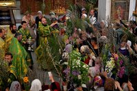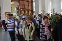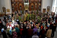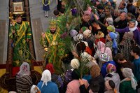 После чтения Евангелия было совершено традиционное освящение ветвей верб.