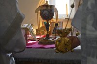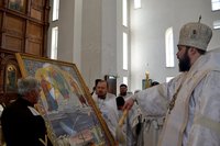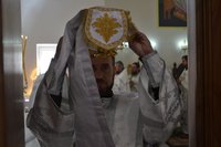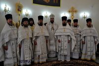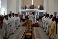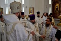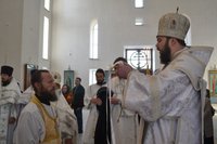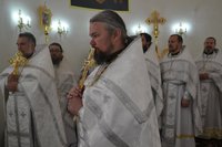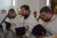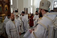 При совершении входа со святым Евангелием Его Преосвященство, епископ Даниил к празднику Святой Пасхи удостоил высоких церковных наград священнослужителей епархии:
