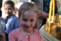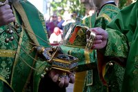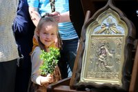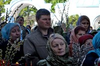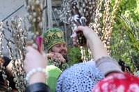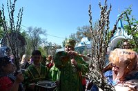 После совершения Таинства Причастия владыка Даниил окропил святой водой вербные и пальмовые ветви собравшихся прихожан.