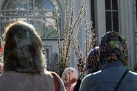 Справка: Вход Господень в Иерусалим, или Неделя Ваий, бывает за неделю до Пасхи. Праздник этот установлен в память торжественного входа Господня в Иерусалим за шесть дней до Пасхи на вольные страдания за грехи мира (Мф. 21, 1-11; Мк. 11, 1-11; Лк. 19, 29-44; Ин. 12, 12-19). Народ встречал Господа, как царя, с зелеными ветками, «ваиями», и с криками: «Осанна Сыну Давидову! Благословен Грядущий во имя Господне! Осанна в вышних!» (Мф. 21, 9). Подобно сему и мы в этот великий праздник держим в руках вербы – «ваии» – с возженными свечами – «знамение победы», и взываем Господу, как Победителю ада и смерти: «Осанна, Бог Господь, и явися нам».