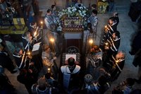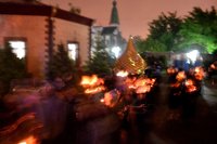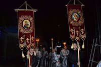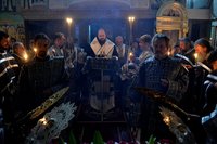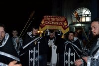 По окончании великого славословия с пением «Святый Боже, Святый Крепкий, Святый Бессмертный, помилуй нас» был совершен крестный ход вокруг храма с Плащаницей Господа нашего и Спасителя.