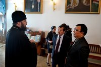 В президиуме пленарного заседания присутствовали: первый секретарь Посольства Российской Федерации Мария Власова, кандидат богословия, преподаватель православной школы «Ретро» диакон Илья Кокин (Россия, Москва), директор школы святого Владимира Станислав Епифанцев, заместитель директора Государственной комиссии по делам религии КР Закир Чотаев.