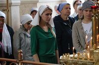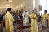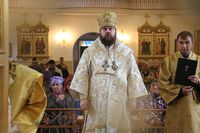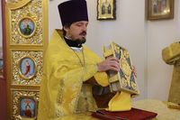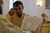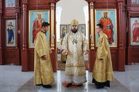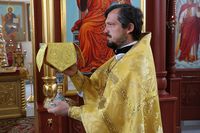 Улуу урматтуу Аны менен собордун клириктери кызмат өтөштү: протоиерей Андрей Кунавин, иерей Георгий Дворовой.