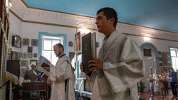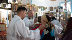 Башчыга көмөктөшкөндөр: Ыйык-Воскресенск кафедралык соборунун ачкыччысы архимандрит Пётр (Путиёв), Архангель храмынын жетекчиси протоиерей Виктор Реймген, иерей Георгий Дворовой, иерей Игорь Жуматий.