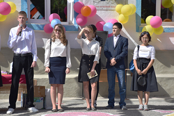 Литургиядан кийин храмдын башчысы жана мектептин духовниги Виктор Реймген окуу жылынын башталышына арналган, ошондой эле Кудайдан жараткандардын баарын сактап калууну суранган молебень өткөрдү. Сыйынуудан кийин мектеп аянтында майрамдык салтанат башталды, анын башкы каармандары мектеп босогосун жаңыдан атап жаткан биринчи класстын окуучулары болушту. Катышуучуларды мектептин директору Виктор ата, завуч Яковлева Ирина Анатольевна, ошондой эле ардактуу меймандар: Ош шаарындагы Россия Федерациясынын башкы консулу Роман Викторович Свистин жана Ош шаарындагы Роскызматташтык өкүлү Куканбаева Елена Георгиевна куттуктап, окуучуларга жакшы насааттарын айтышты. Меймандар мектепке көмөкчү окуу китептерин жана китептерди белекке беришти. Салт болуп калгандай биринчи коңгуроо жаңы окуу жылын баштап берди!