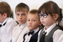 Ачылышка ыйык князь Владимирдин мектебинин окуучулары, Ленинград камалуусунда болгондор жана Улуу Ата Мекендик согуштун ардагерлери катышышты.