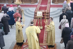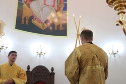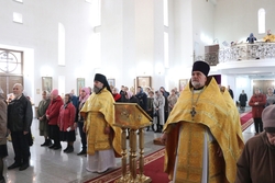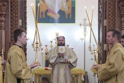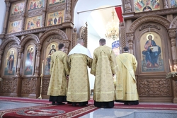 Улуу урматтуу Аны менен кызмат өтөштү: митрофордук протоиерей Валентин Никонов, игумен Нектарий (Блинов), Владимир соборунун башчысы протоиерей Алексий Зайцев, иерей Георгий Дворовой.
