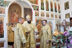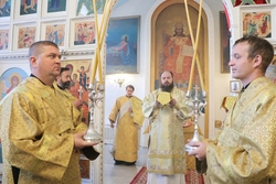 Улуу урматтуу Аны менен кызмат өтөштү: митрофордук протоиерей Валентин Никонов, архимандрит Пётр (Путиёв), иерей Георгий Дворовой.