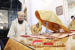 Улуу урматтуу Аны менен кызмат өтөштү: митрофордук протоиерей Валентин Никонов, архимандрит Пётр (Путиёв), иерей Георгий Дворовой, иерей Андрей Андреев.