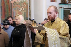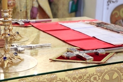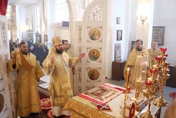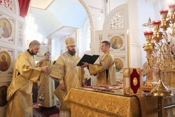 Улуу урматтуу Аны менен кызмат өтөштү: архимандрит Пётр (Путиёв), протоиерей Андрей Кунавин, иерей Владимир Кусаинов.