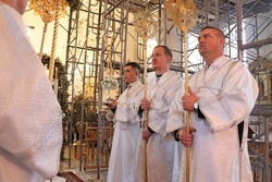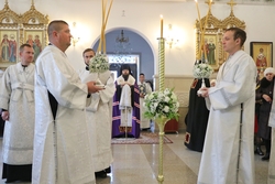Улуу урматтуу Аны менен кызмат өтөштү: митрофордук протоиерей Валентин Никонов, архимандрит Петр (Путиев), протоиерей Андрей Кунавин, иерей Георгий Дворовой, иерей Андрей Андреев, иерей Владимир Кусаинов.