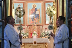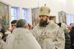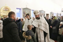 Кудайга сыйынуудан кийин архимандрит Пётр (Путиёв) чиркөөгө келген адамдарга кереметтүү елей сүйкөдү.