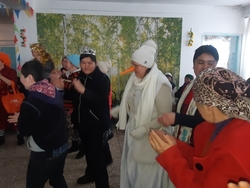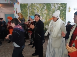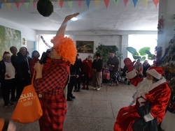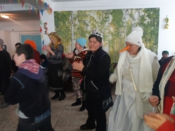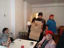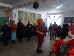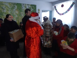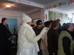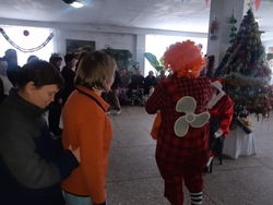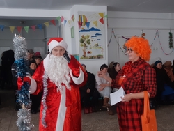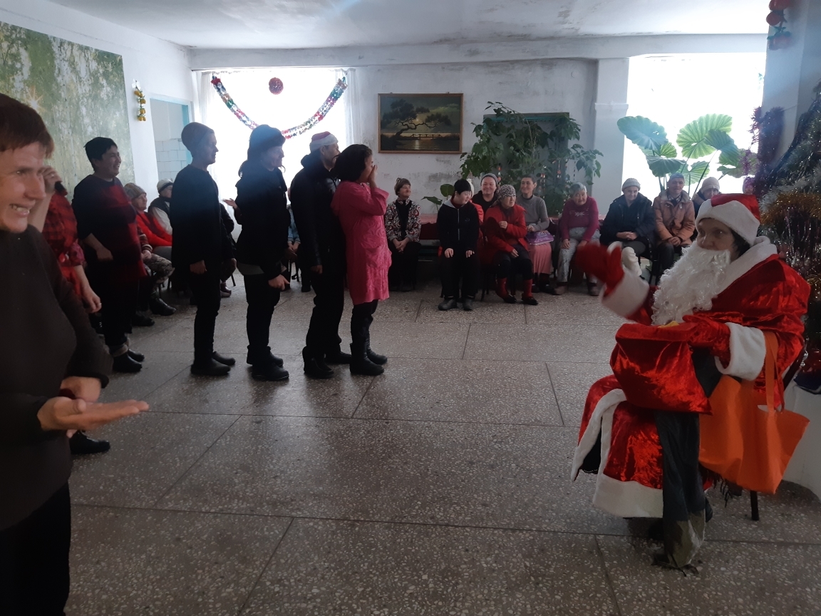 Социалдык кызмат кылуу бөлүмүнүн кызматкерлери тарабынан мекеменин камкордугуна алынган адамдар үчүн Аяз Атанын катышуусу менен костюмдаштырылган оюн даярдалган, аны өткөрүүгө православ жаштар кыймылынын волонтерлору жардам беришти. Оюндан кийин бардык катышуучуларга таттуу белектер тартууланды.