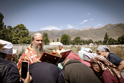 Литургиянын аягында Улуу урматтуу динге ишенгендерге архипастырлык сөзү менен кайрылды, анда ал көтөрүлүш жана монастрга кол салуу тарыхын айтып берди, келечекте мындай окуяларга жол бербеш үчүн бул окуяларды эскерип туруу зарыл экенин баса белгиледи. Боордош элдерде аларды бириктирип турган көп нерсе бар. Башчы өз кайрылуусунда «Манас» эпосунун маанилүү осуяттарына токтолуп, кыргыздардын бул маданий жана адабий мурасында баатырдык эрдиктерди белгилөө менен бирге, тынчтыкты сактоо жана улуу максаттар үчүн биригүү зарылчылыгы тууралуу көптөгөн чакырыктар бар экенин белгиледи. Бири-бирибиз менен ынтымакта, биримдикте гана ар кандай кыйынчылыктарга, келишпестиктерге туруштук бере аларыбызды адамдарга түшүндүрүү керек. Мисалы, Улуу ата мекендик согушта кыргызстандыктар фронтко аттанган, ал эми карапайым калк блокадалык Ленинграддан жетим балдарды кабыл алган. Токтогон Алтыбасаров 16 жаш курагында 150 баланы кабыл алган, аларды тарбиялаган.