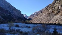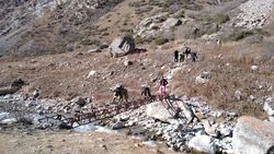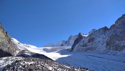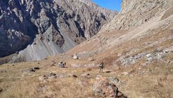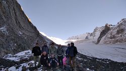 альплагердеги 2200 м бийиктиктен болжол менен 3450 м бийиктиктеги кепеге көтөрүлүштү. Өйдө-ылдый жерлер болжол менен 1200 метр.