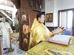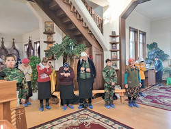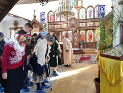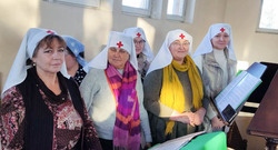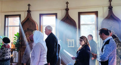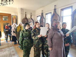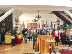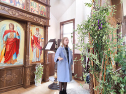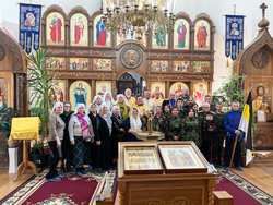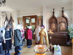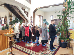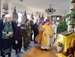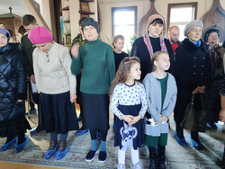Храмга Бишкек жана Кыргызстан епархиясынын социалдык кызмат жана кайрымдуулук бөлүмүнүн жетекчиси Иванова Елена Юрьевна башында турган мээрман айымдар сыйынуу сапары менен келишти. Алар храмга белгилүү бир максат менен – биринчи жолу Литургияда бир нече кудайга сыйынуу ырларын аткаруу үчүн келишкен.