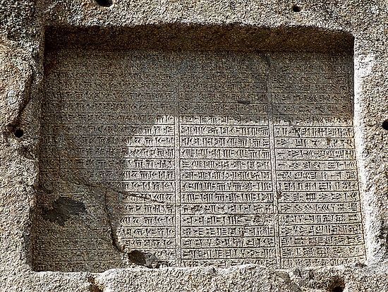 Надпись на обнаруженном фрагменте стелы сделана на древнеперсидском языке клинописью, использовавшейся только персидским царем. По оценкам ученых, на стеле сохранилось около 10-15% сообщения. Тем не менее, расшифрованные части надписи прямо указывают на то, что она сделана от имени известного персидского царя Дария I. Этому не противоречит и контекст находки ‒ стела обнаружена в слоях, которые можно предварительно отнести к первой половине V в. до н.э. Отметим, что большинство известных на сегодня (около 200) царских клинописных документов были обнаружены в Персеполе (Персеполисе), столице древнеперсидского царства.