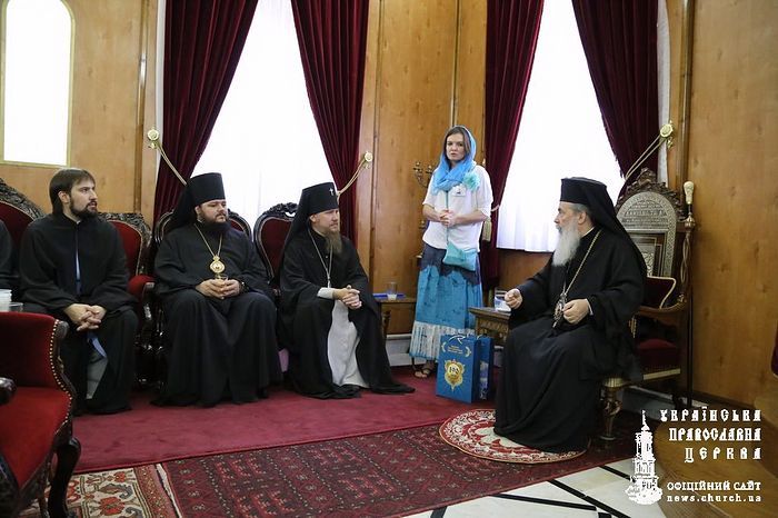 В тот же день с Предстоятелем Иерусалимской Православной Церкви встретились архиепископ Изюмский и Купьянский Елисей, епископ Бердянский и Приморский Ефрем вместе с частью паломников из Украины.