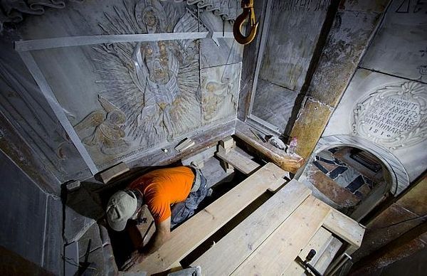 В конце октября археологи впервые за 5 веков подняли белую мраморную плиту, закрывающую гробницу. Там они обнаружили уступ из известняка, на котором, когда-то лежало тело Господа Иисуса Христа.