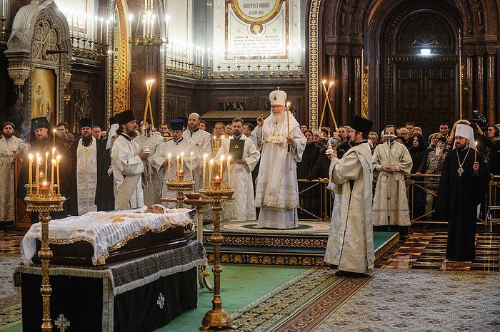 Перед началом чина отпевания Святейший Патриарх Кирилл произнес слово, посвященное памяти Андрея Карлова: