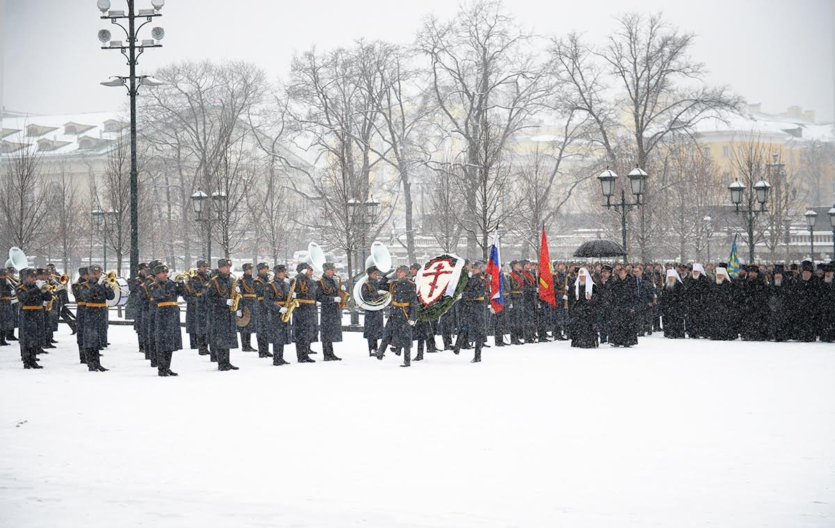 23 февраля 2017 года, в День защитника Отечества, Святейший Патриарх Московский и всея Руси Кирилл возложил венок к могиле Неизвестного солдата в Александровском саду у стен Московского Кремля.