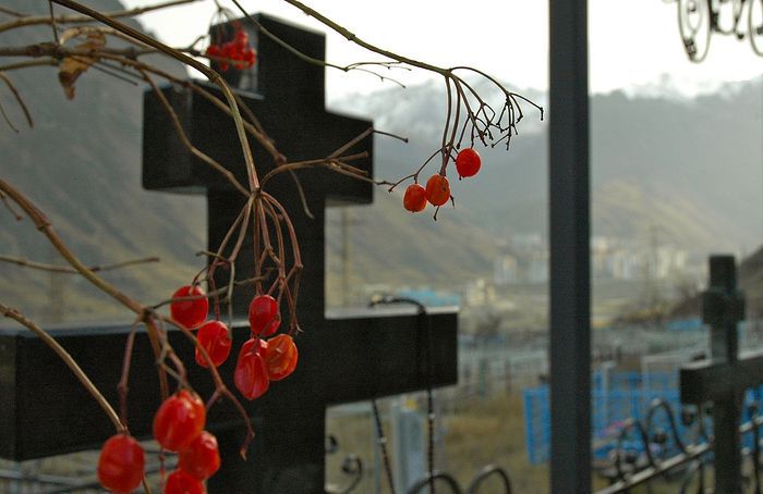 В реальности ничего этого нет. А есть – черный мраморный крест на горе, к которому прижимается, трепеща на ветру, разросшийся куст калины. Несколько лет назад накануне дня рождения батюшки, в день памяти страстотерпца святого благоверного князя Игоря, он зацвел.