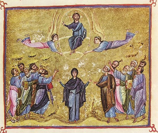 В эту тяжелую минуту разлуки пришли два светлых ангела, чтобы ободрить учеников Господа, говоря: «Мужи Галилейские, что вы смотрите с болью на небо? Ободритесь, укрепите сердца ваши. Вы ловцы человеков. В ваших сердцах записаны Евангелия Христовы. На ваших плечах висит Крест Его. Вашими руками созиждется Церковь Его. Вашими языками проповедан будет закон новый. Не стойте же более, глядя так на небо. Идите в Иерусалим. Сила свыше укрепит вас спустя немного дней. Тогда обходите ногами вашими все страны земли, возвещая всем, что видели своими глазами и слышали своими ушами. Ведь “Сей Иисус, вознесшийся от вас на небо, придет таким же образом, как вы видели Его восходящим на небо” (Деян. 1:11)».